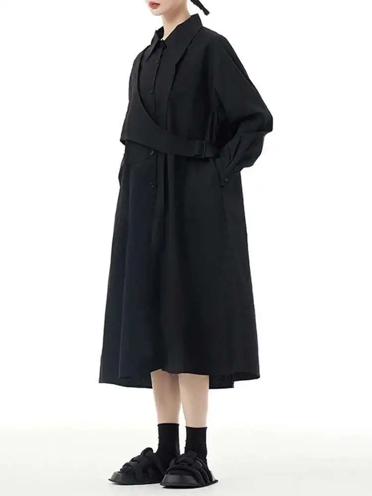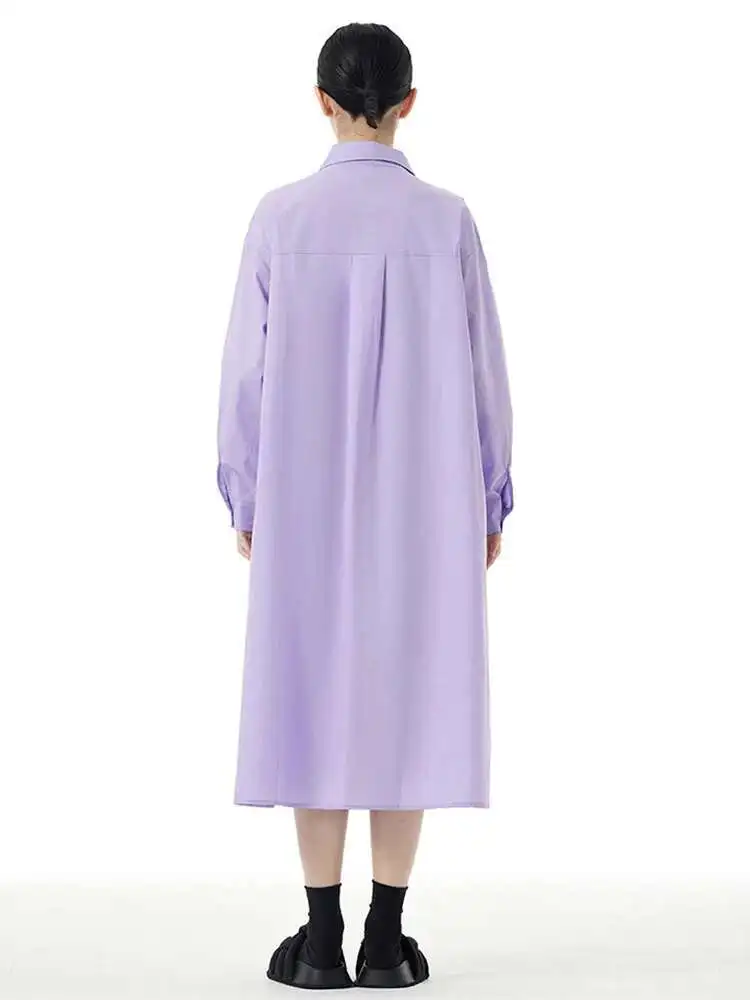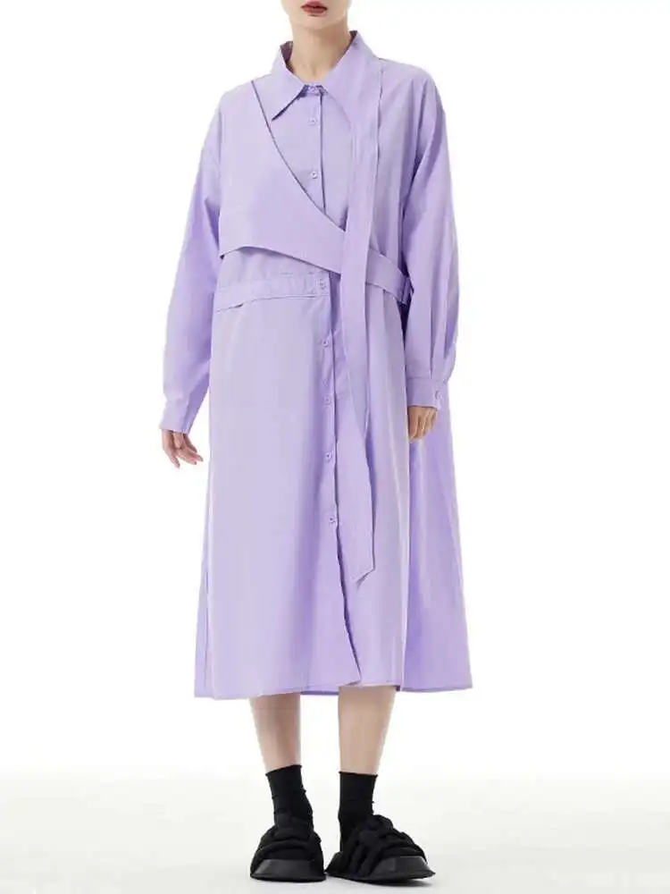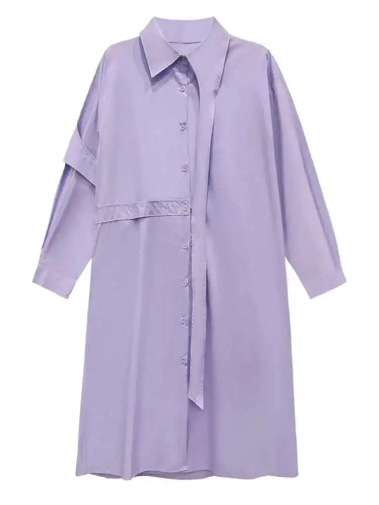 Women Purple Belted Big Size Irregular Midi Shirt Dress New Lapel Long Sleeve Fashion Tide Spring Autumn 2025 1DH5164
