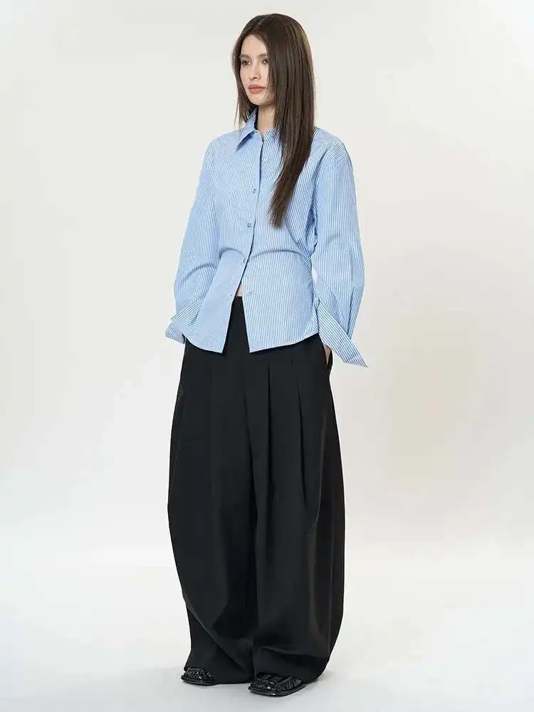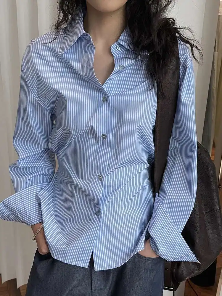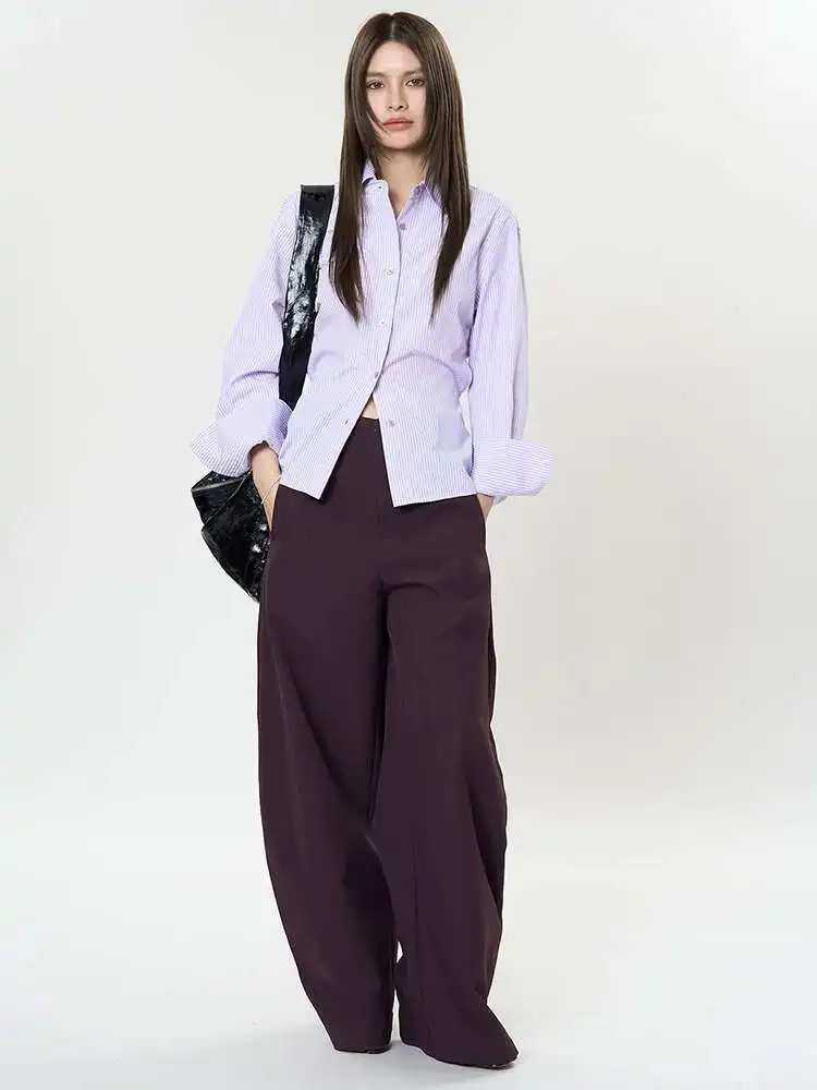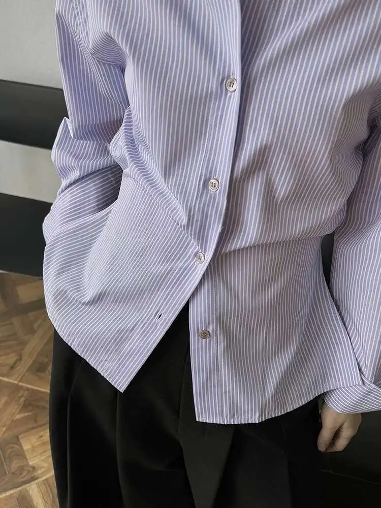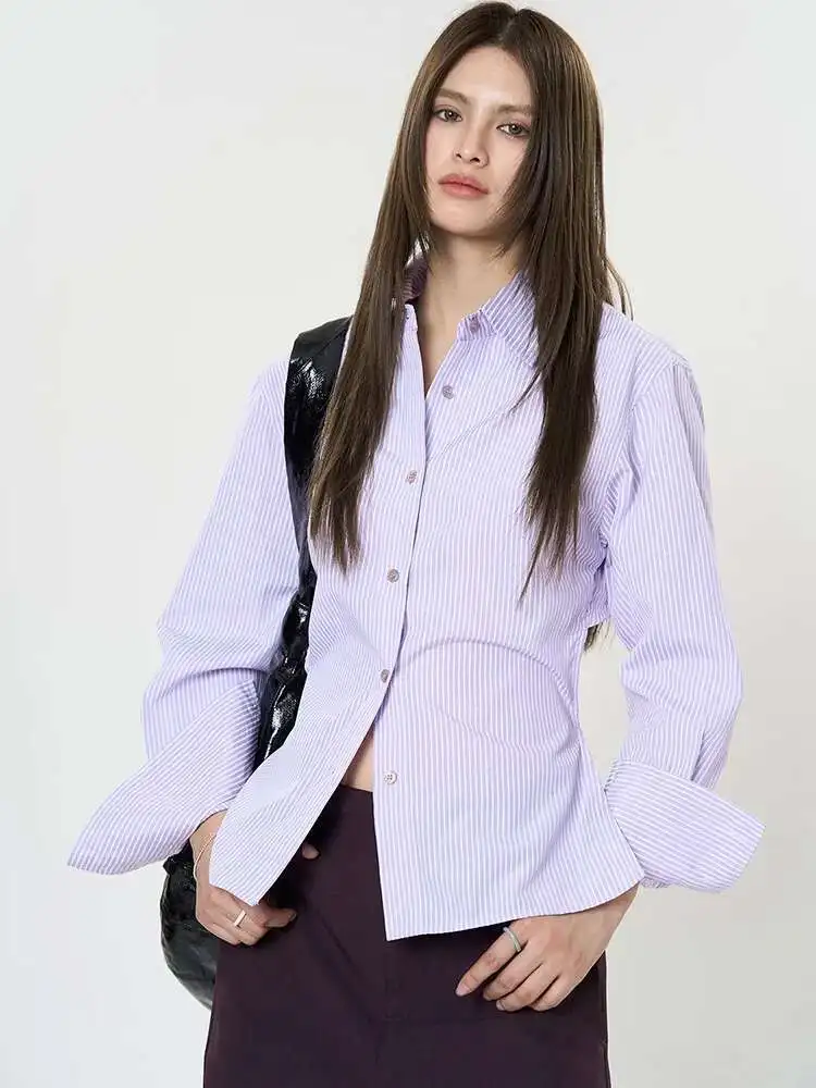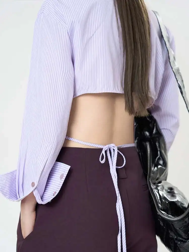 Women Purple Striped Backless Bandage Slim Blouse New Lapel Long Sleeve Shirt Fashion Tide Spring Autumn 2025 1DJ0065