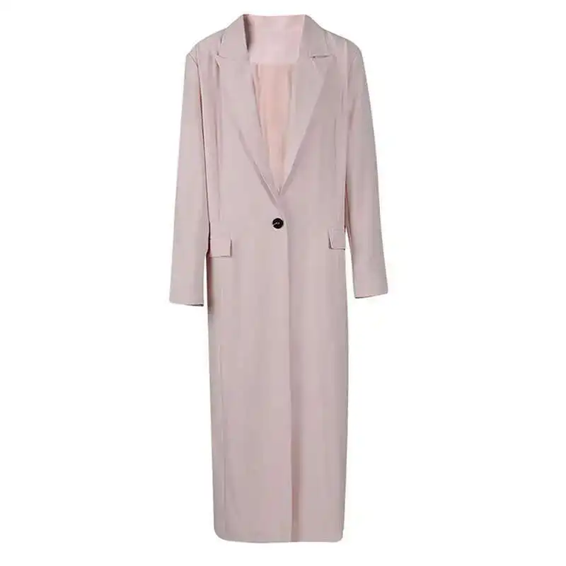 Women Single Button Big Size Long Elegant Blazer New Lapel Long Sleeve Jacket Fashion Tide Spring Autumn 2025 1LD2107