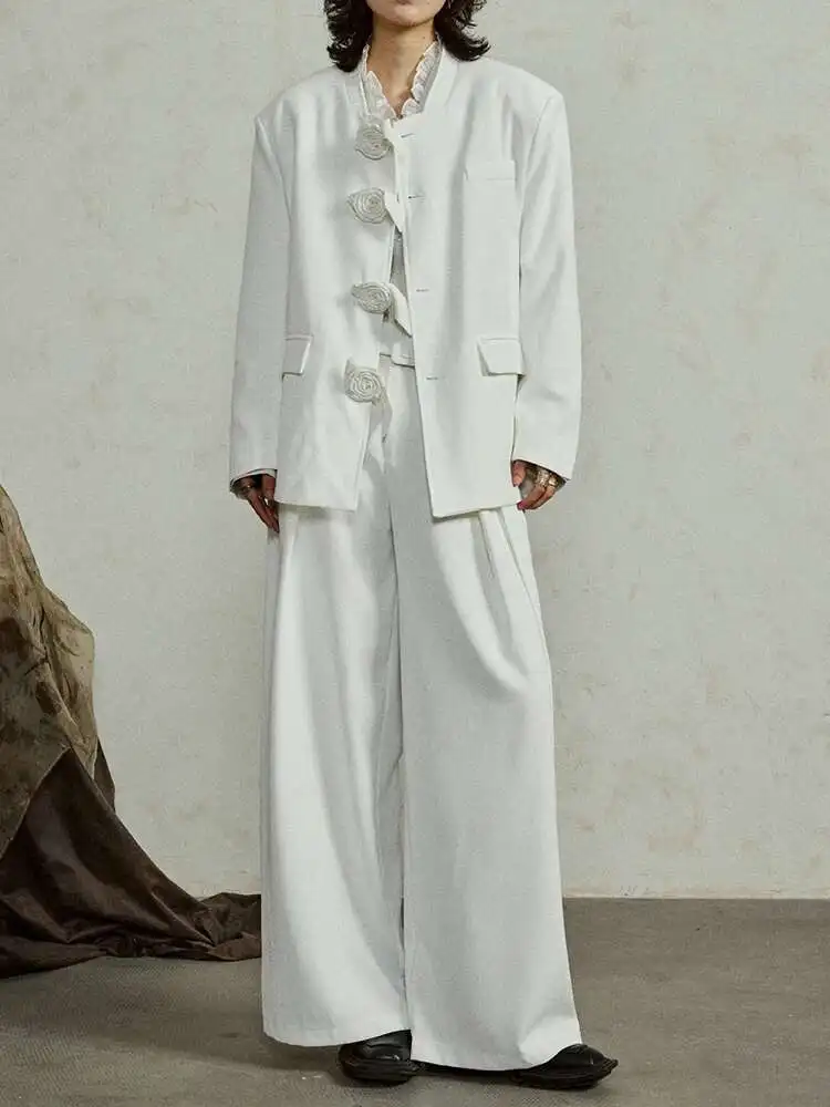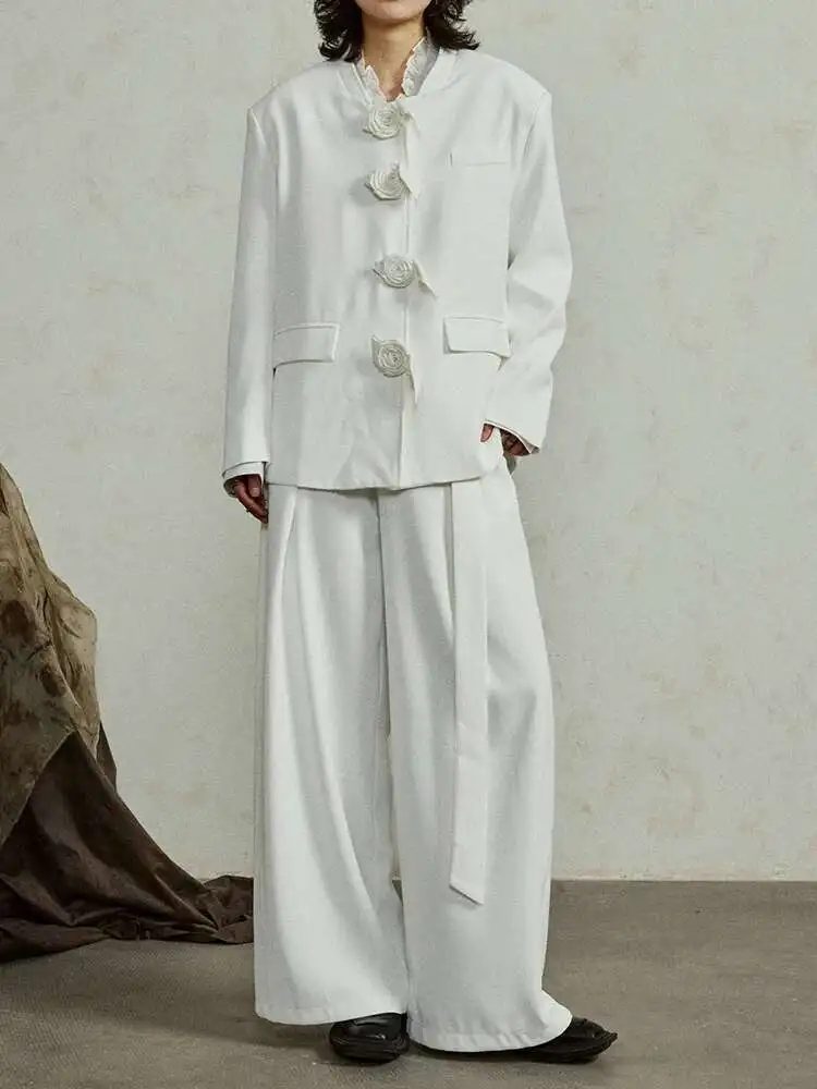Women Three-dimensional Flower Big Size Blazer New Stand Collar Long Sleeve Jacket Fashion Tide Spring Autumn 2025 1DJ0287