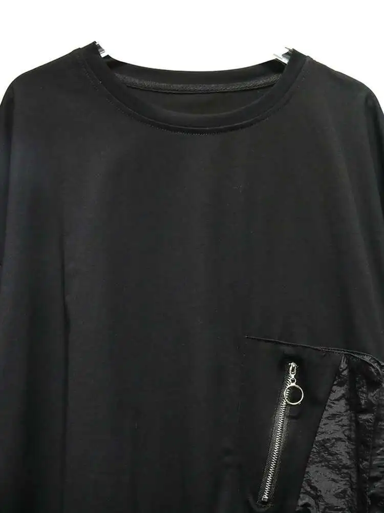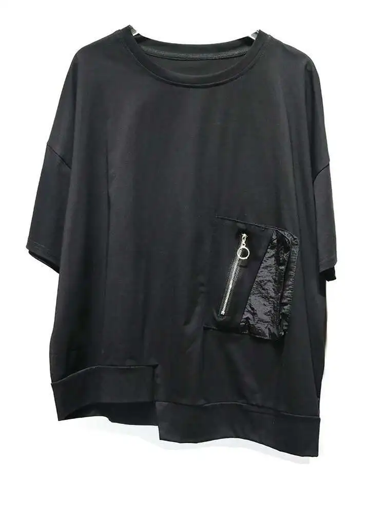 Women White Irregular Pocket Big Size Casual T-shirt New Round Neck Short Sleeve Fashion Tide Spring Summer 2025 1DJ0620