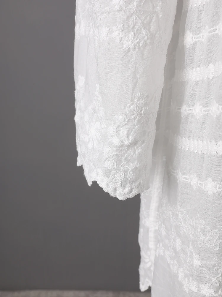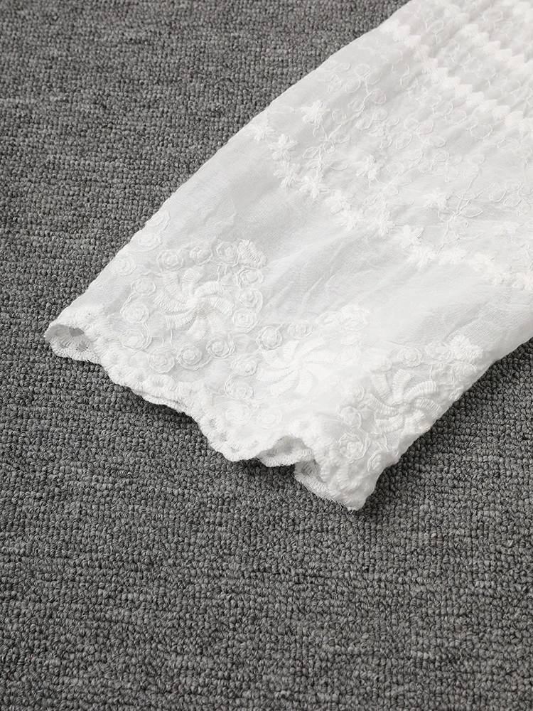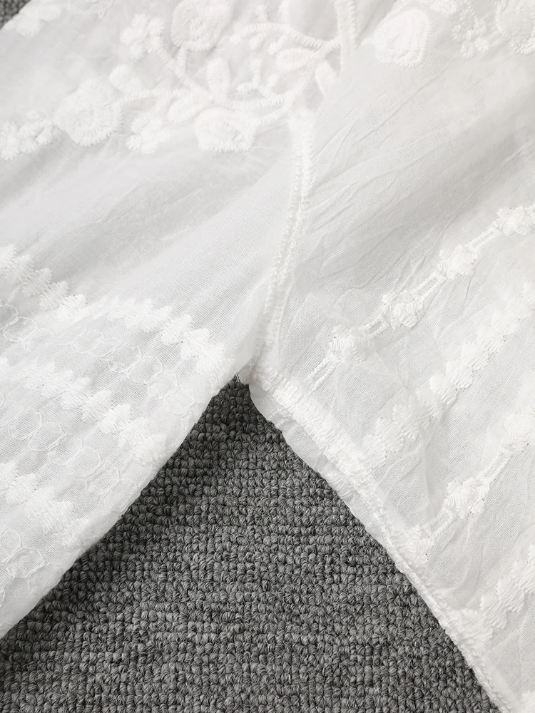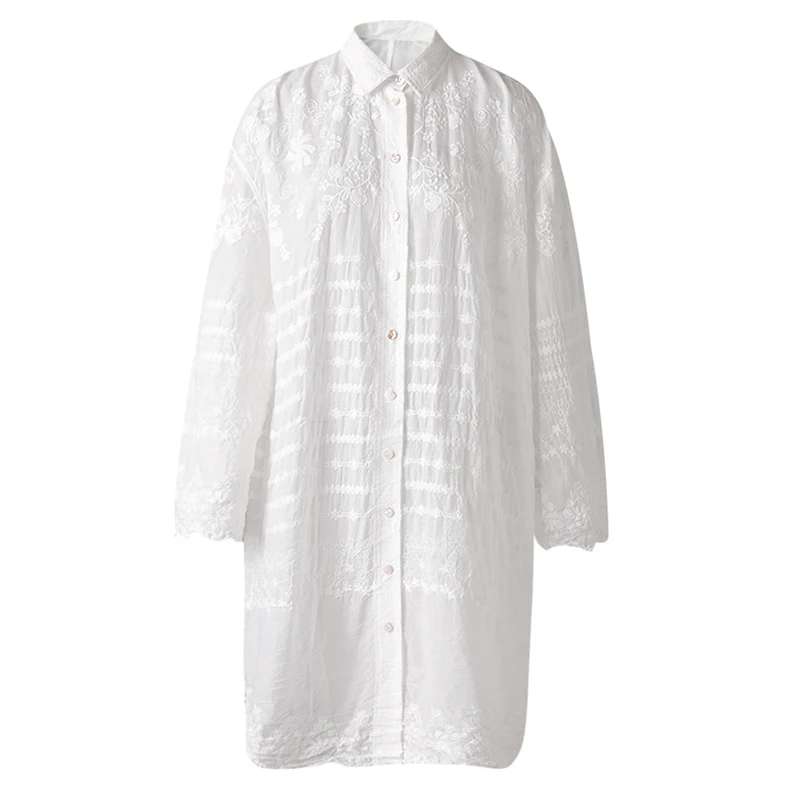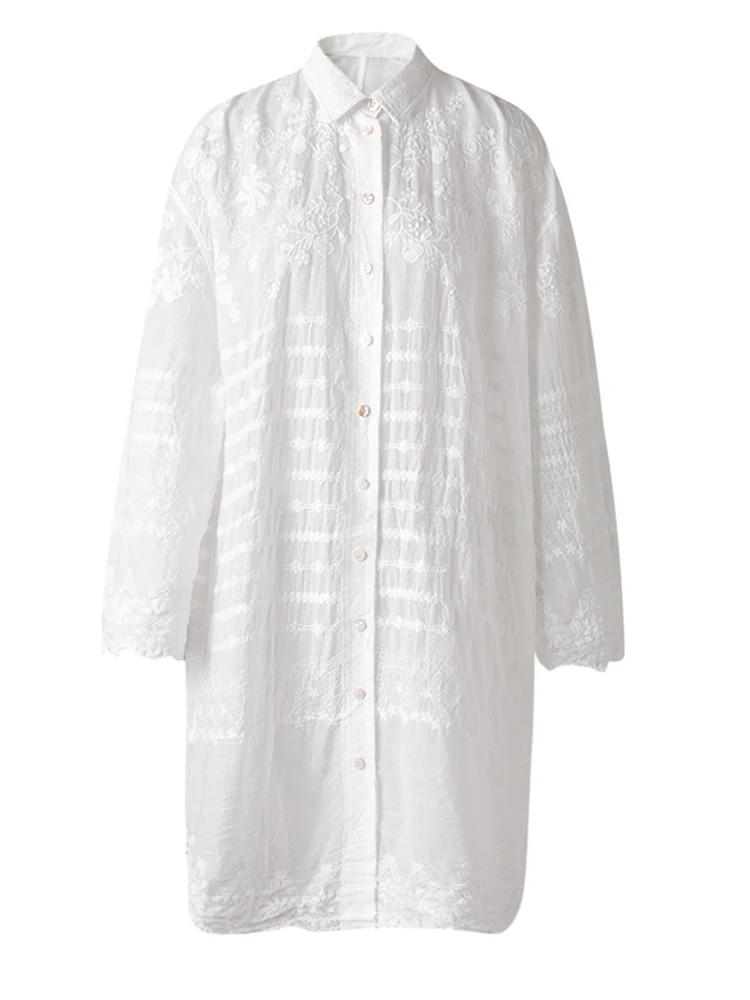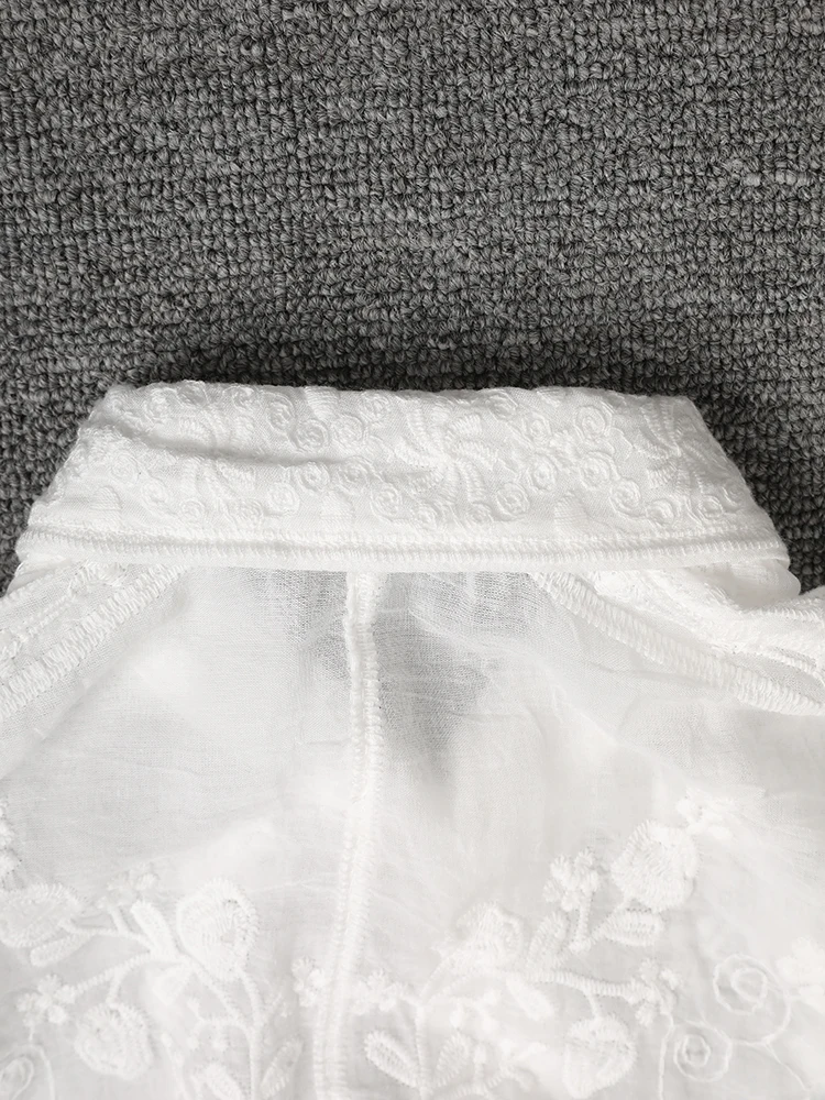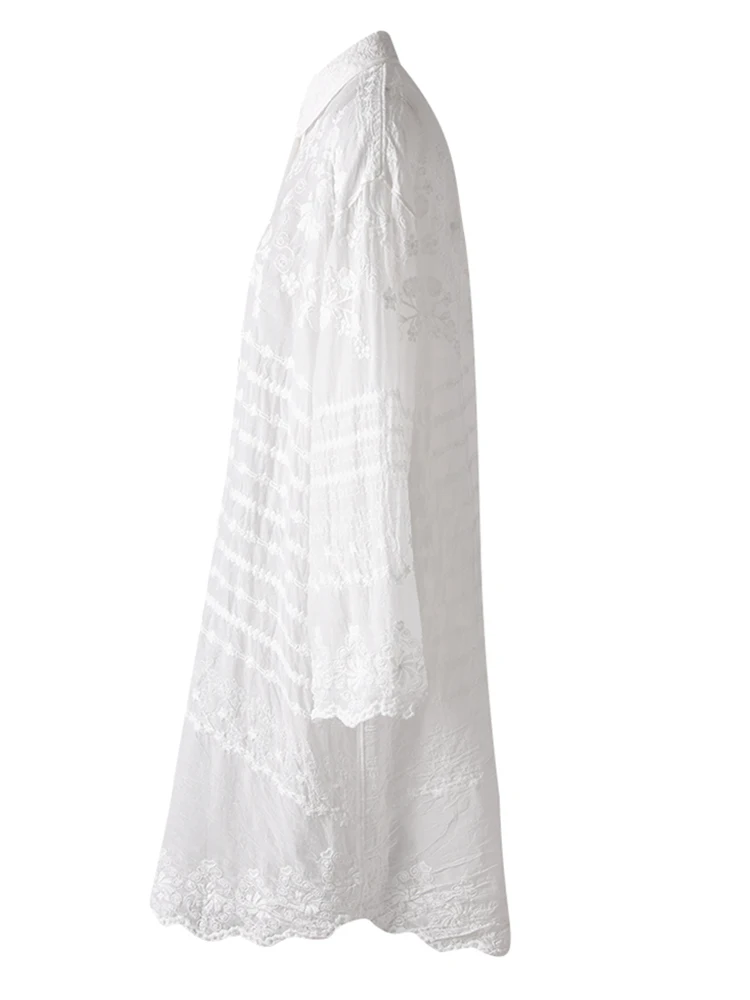 Women White Lace Perspective Big Size Long Blouse New Lapel Long Sleeve Shirt Fashion Tide Spring Autumn 2025 5C1327