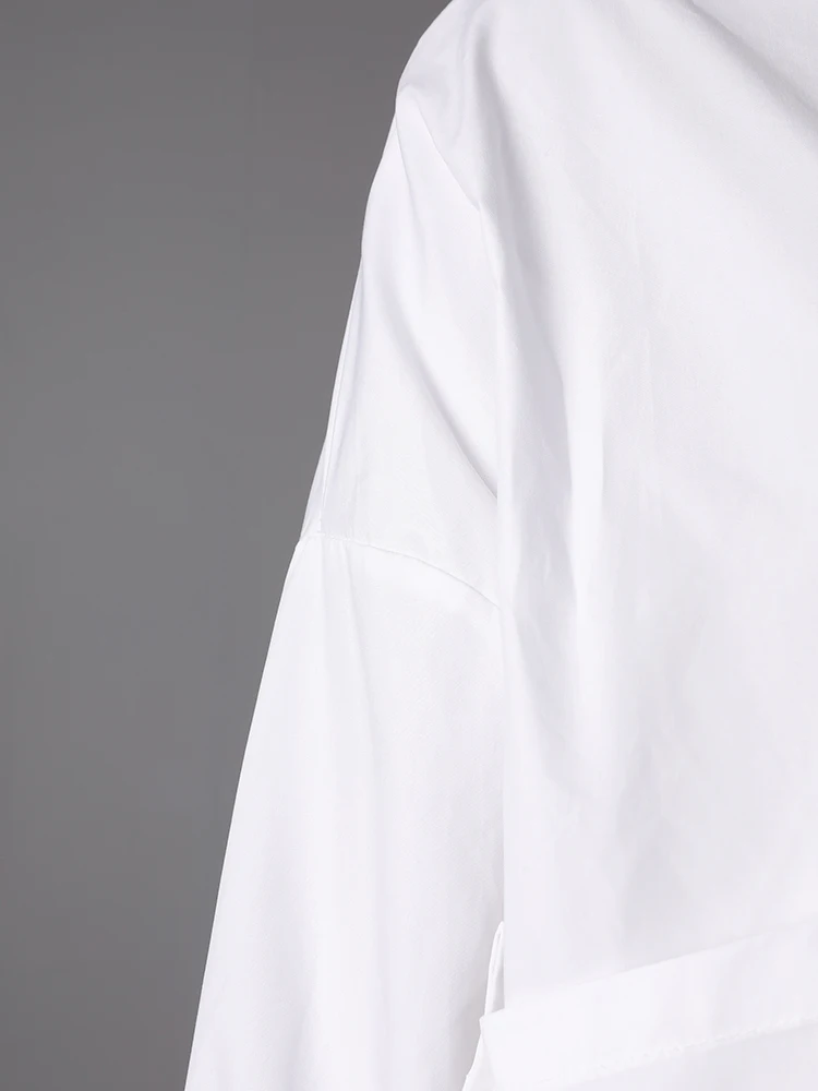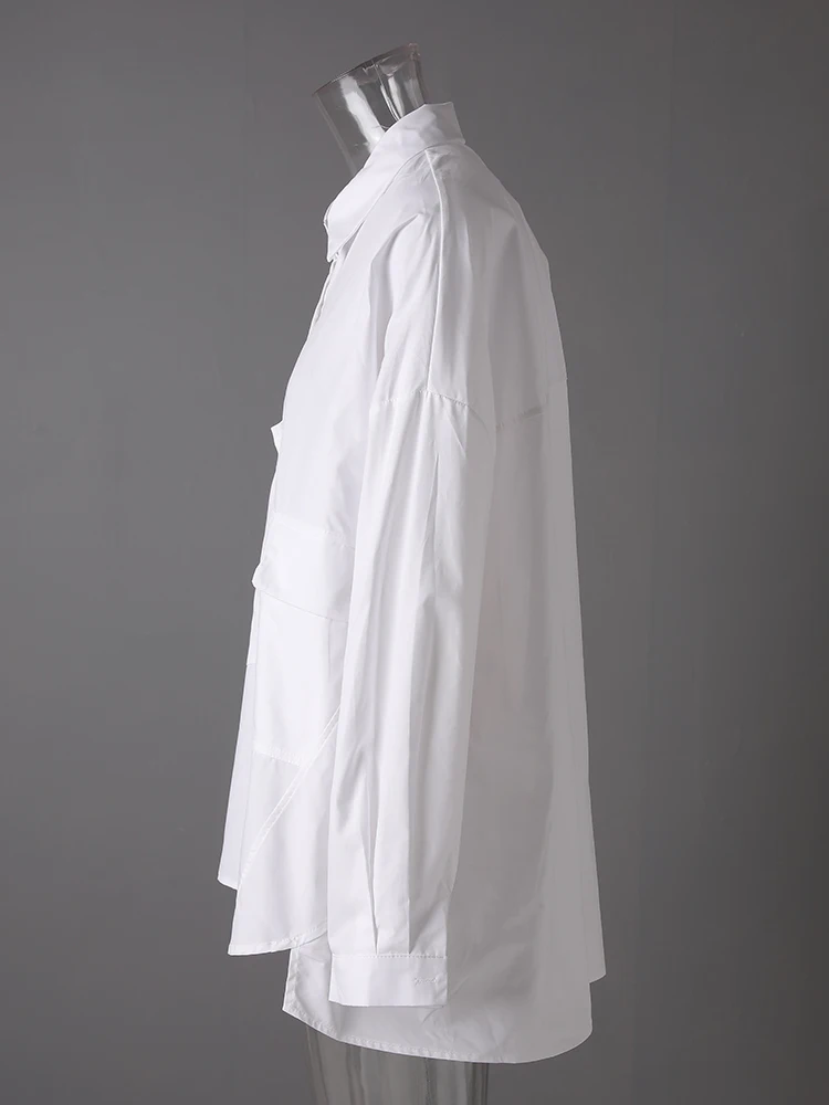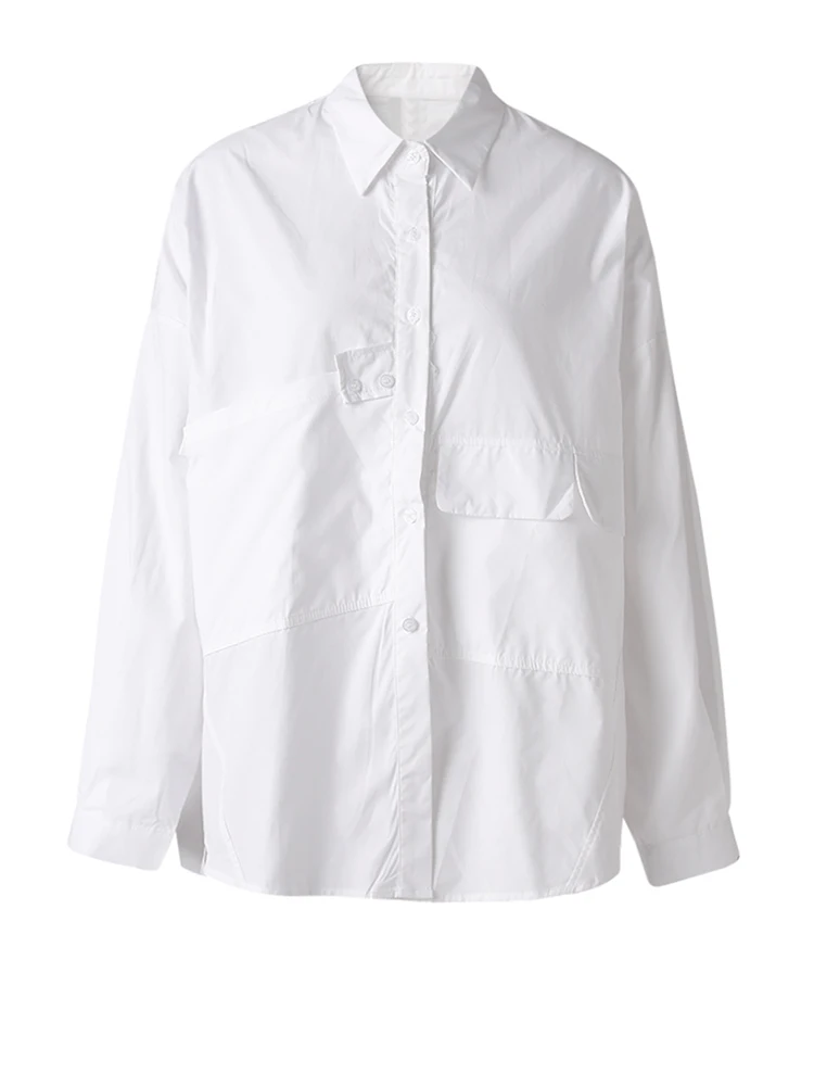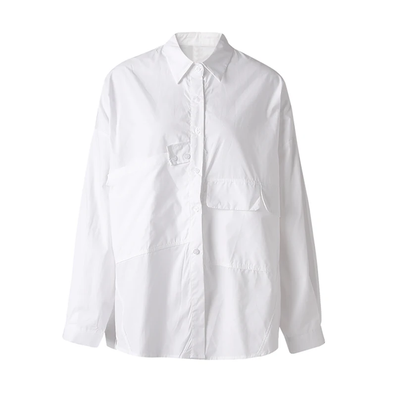 Women White Pocket Spliced Big Size Casual Blouse New Lapel Long Sleeve Shirt Fashion Tide Spring Autumn 2025 30A1910