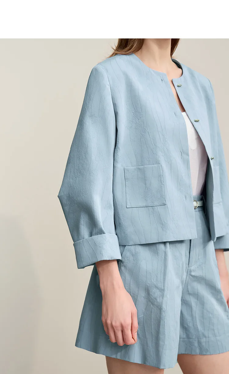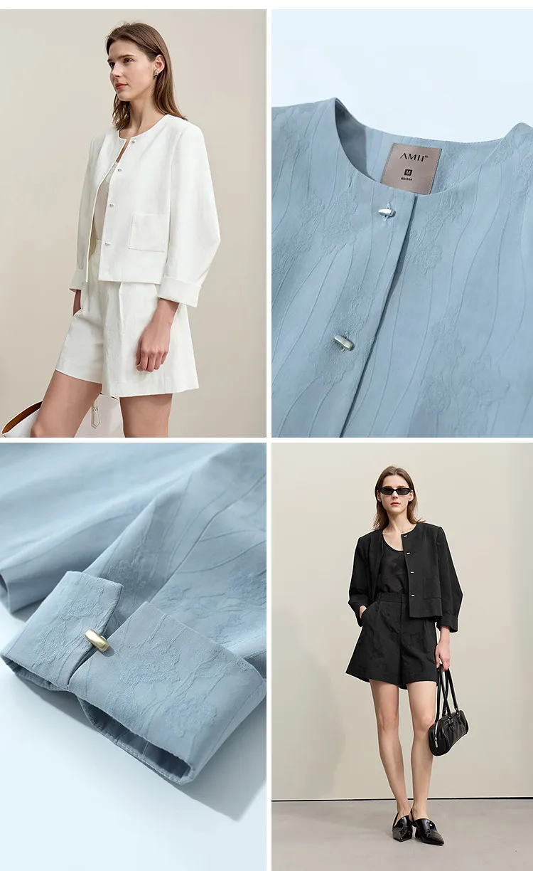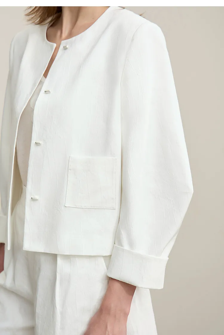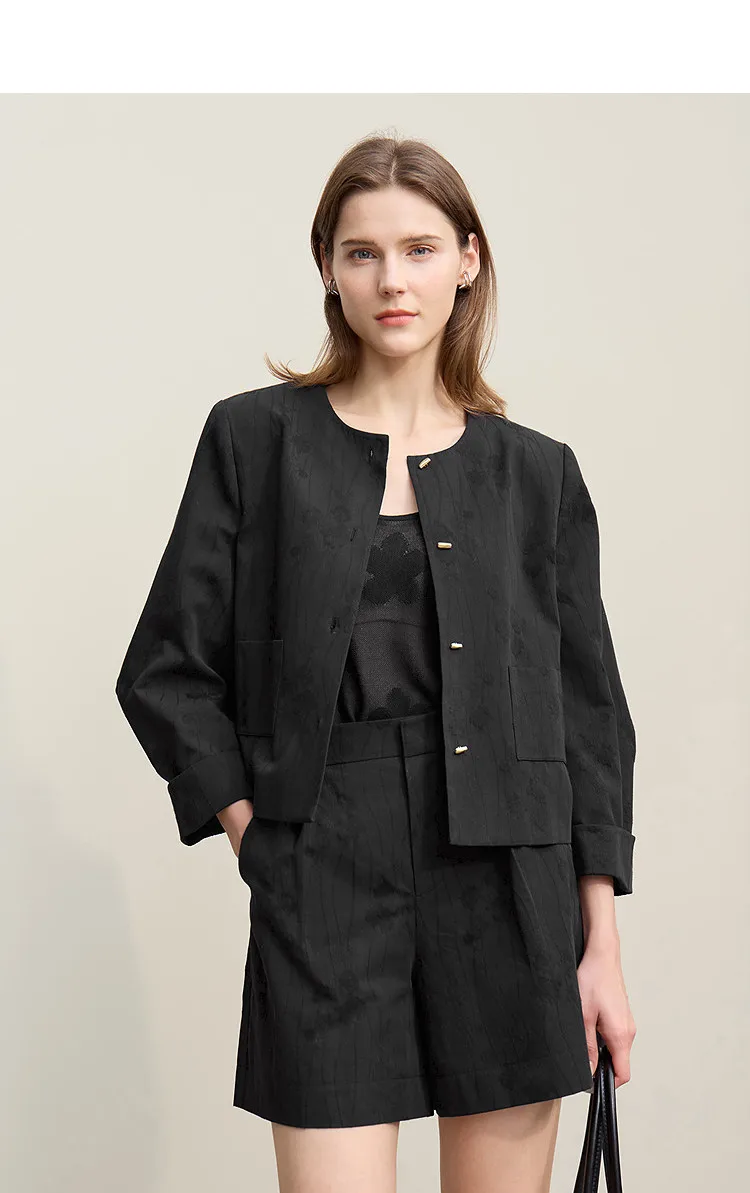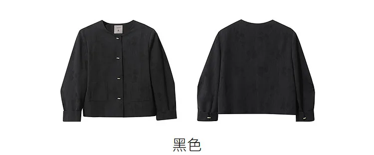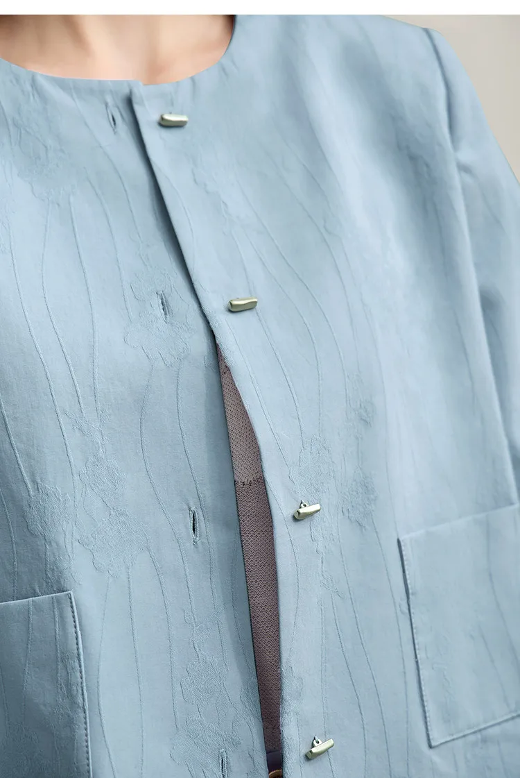 Women's Jacket 2026 Spring New Round Neck Metal Buckle Cotton Jacquard Jacket Women's Retro Loose Long Sleeve Top 12641110