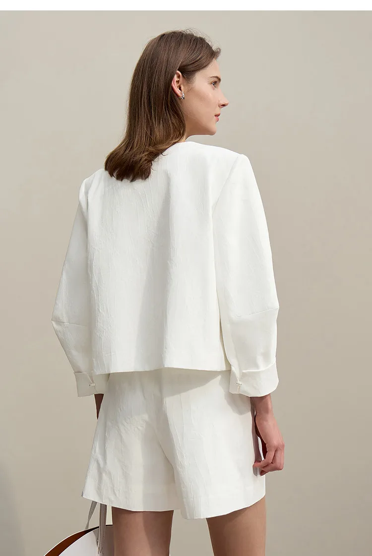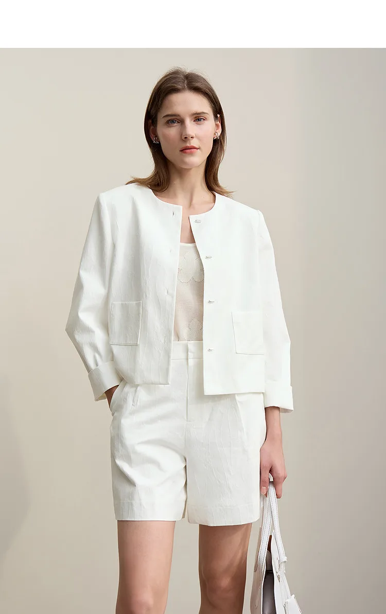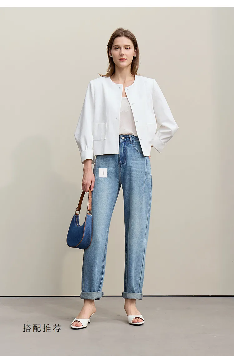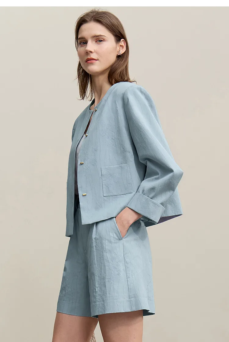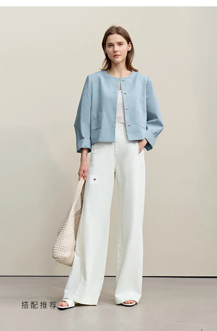 Women's Jacket 2026 Spring New Round Neck Metal Buckle Cotton Jacquard Jacket Women's Retro Loose Long Sleeve Top 12641110