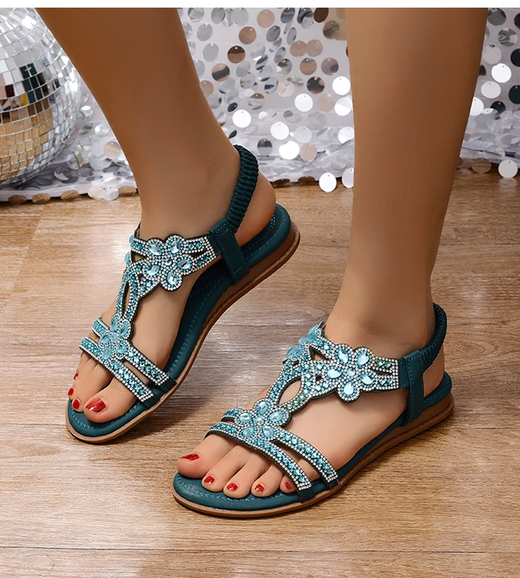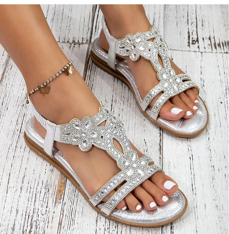 Women's Sandals Bling Bling Crystal Sandals Summer 2025 New Shoes For Women Low Heels Flat Sandalias Mujer Footwear Summer Shoes