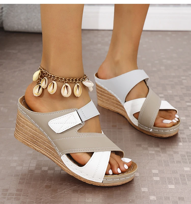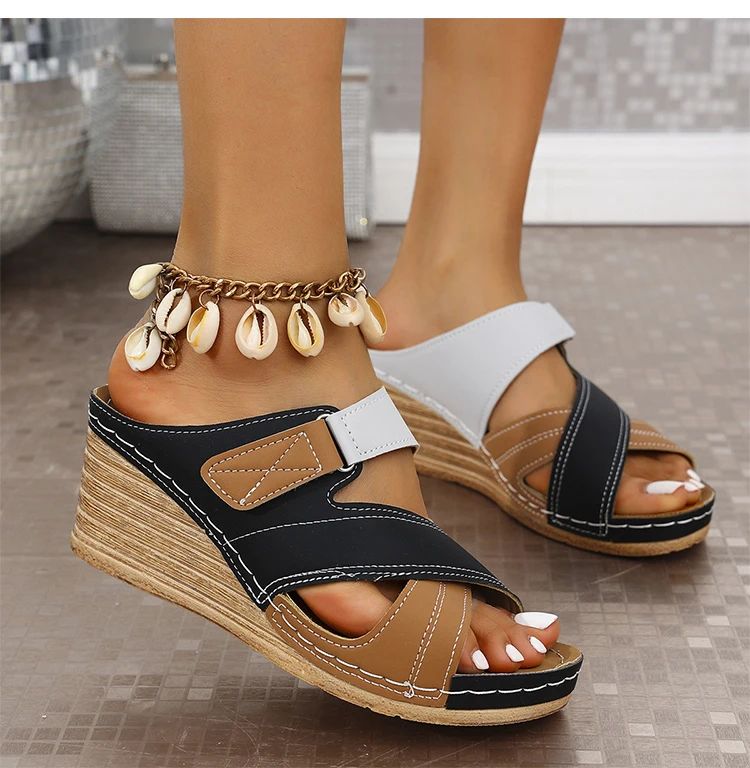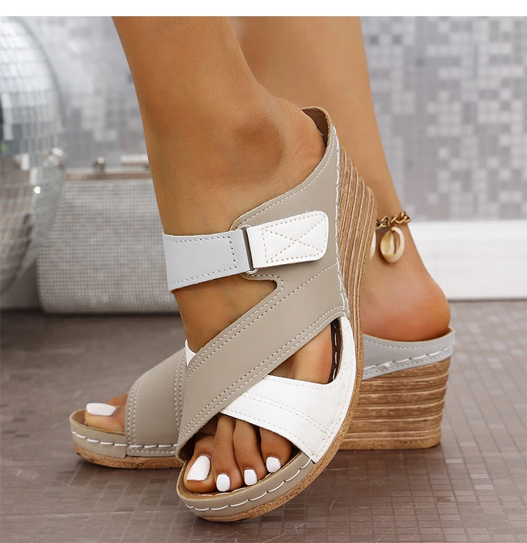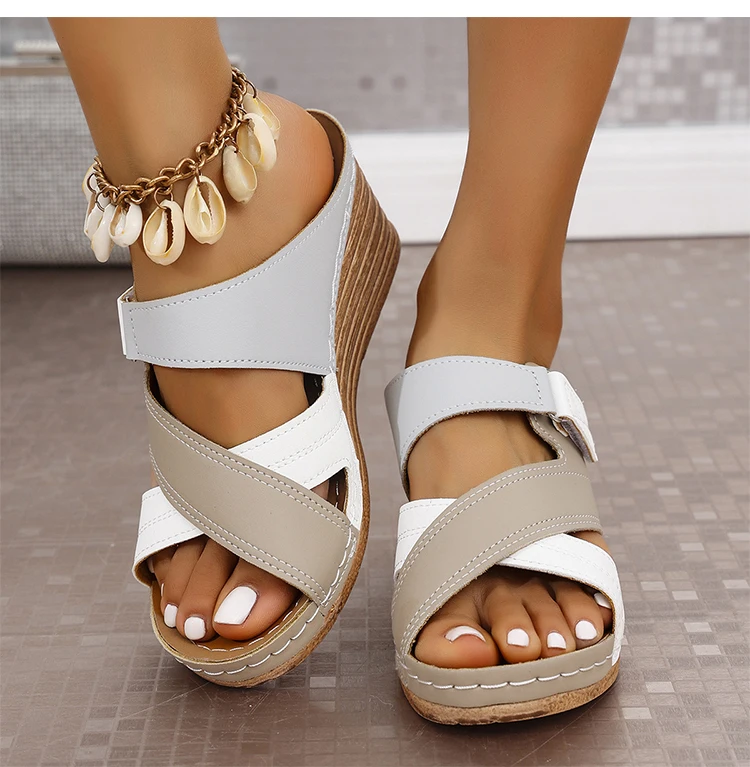 Women's Sandals High Heels Wedges Sandals Women Shoes Summer Sandalias Mujer Mix Color Slippers Heeled Sandals Summer Footwear