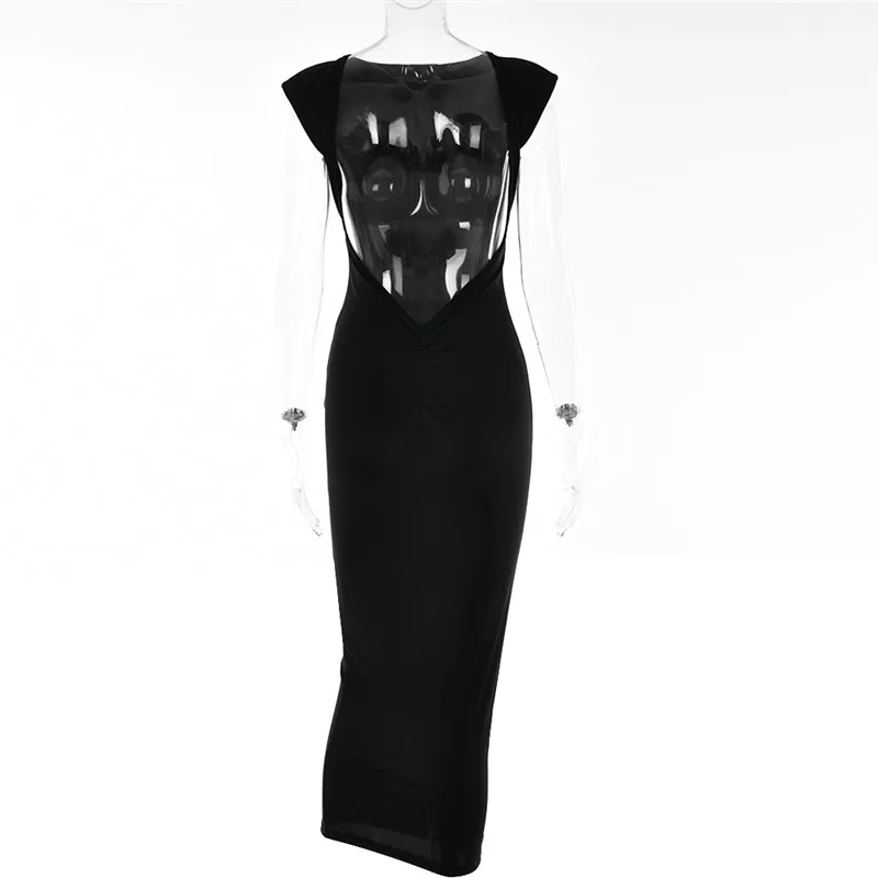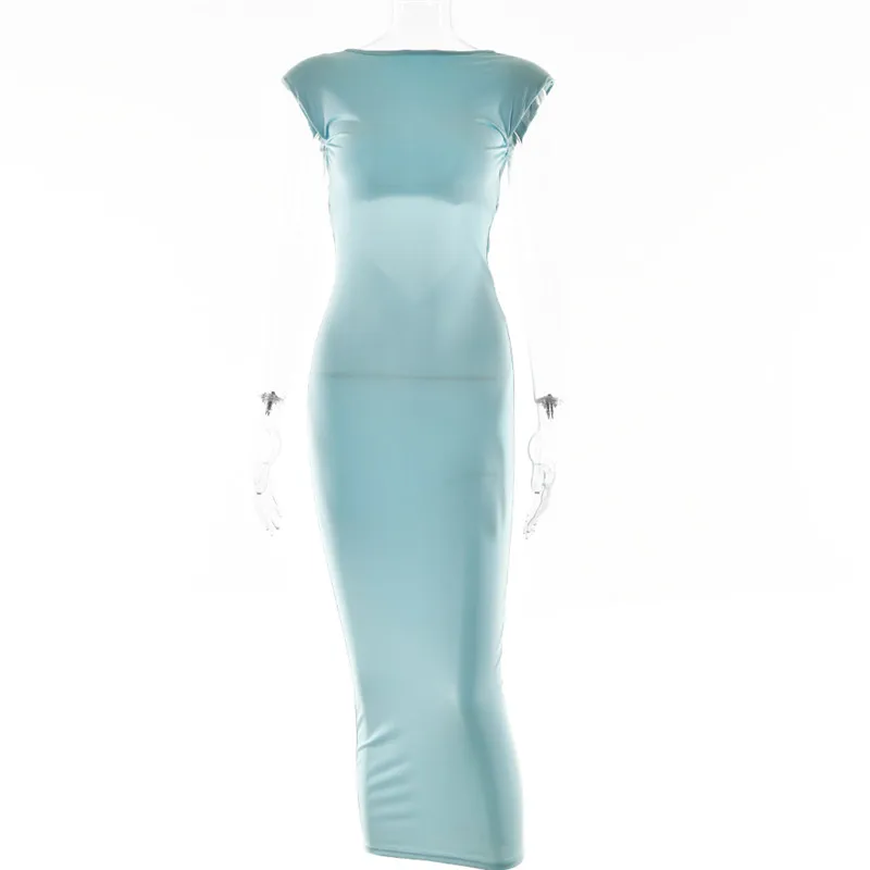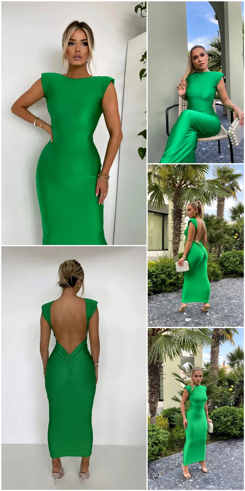 Women's Sexy Backless Evening Maxi Dress, Green Sleeveless, Round Neck, Elegant Women Dress, Summer Skinny Party Clubwea