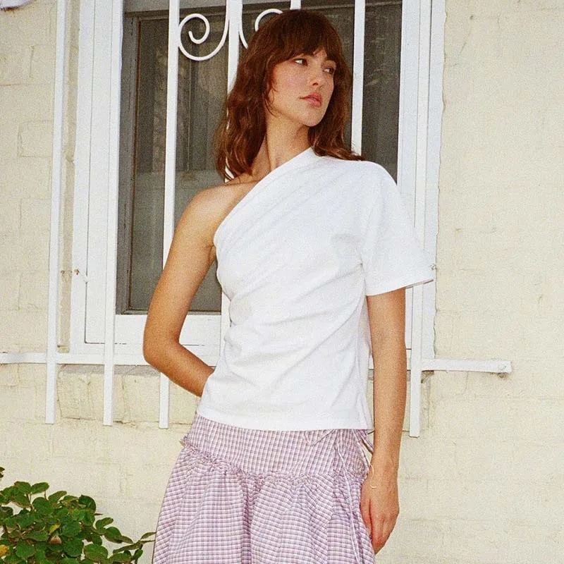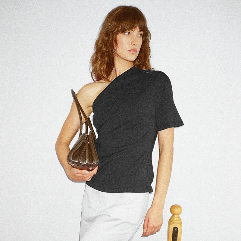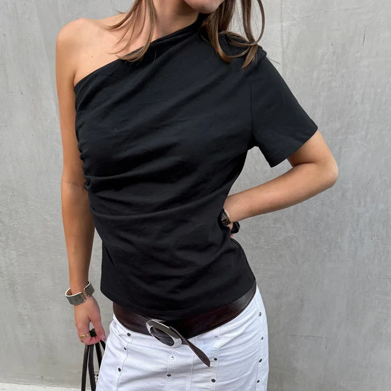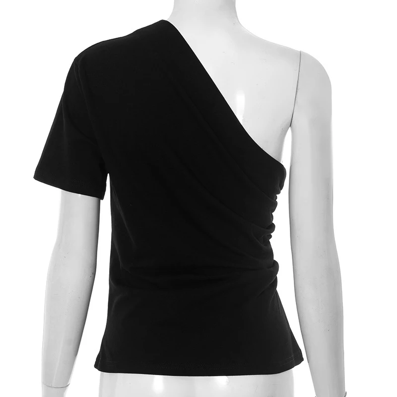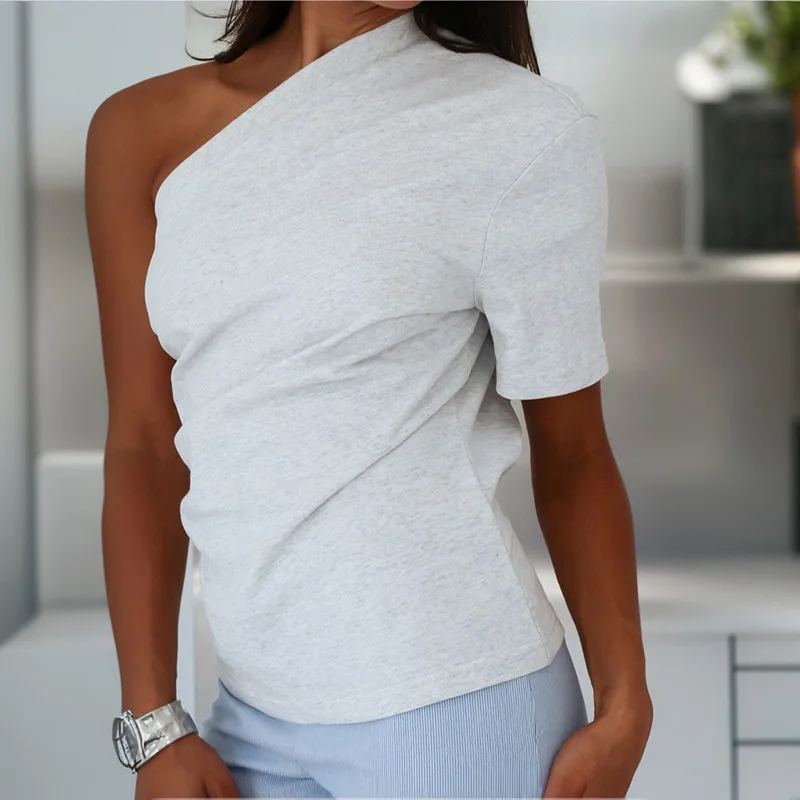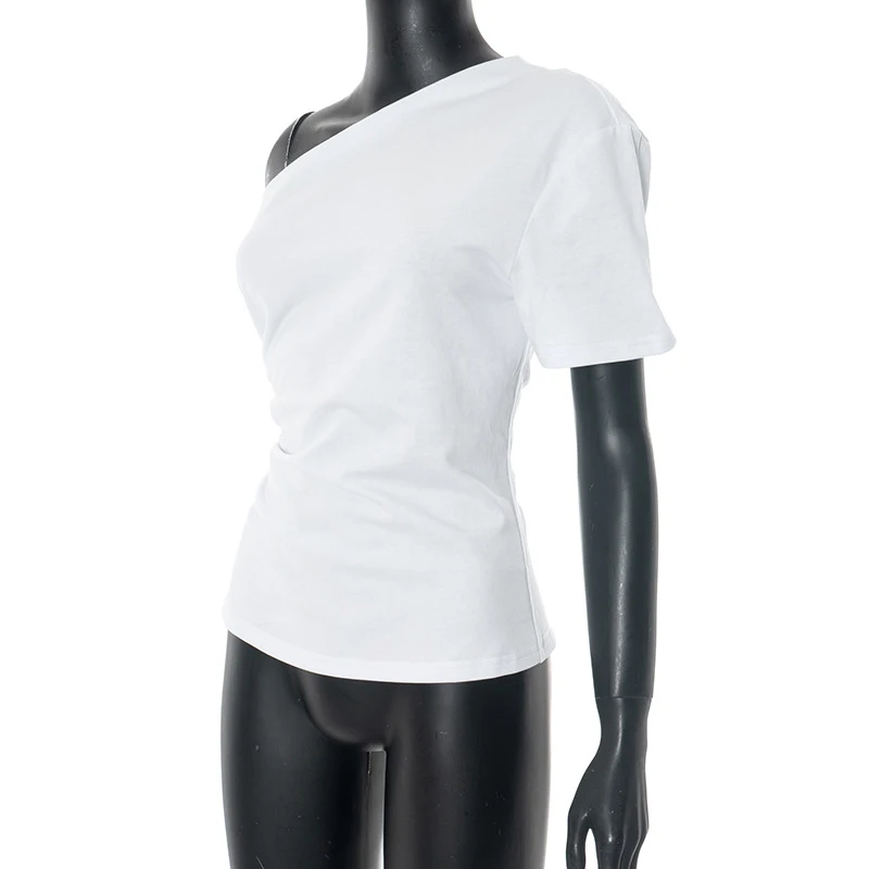 Women'S Solid Color One-Shoulder Thin Short-Sleeved T-Shirt Tops Summer New Versatile Lazy Causal And Comfortable Tops