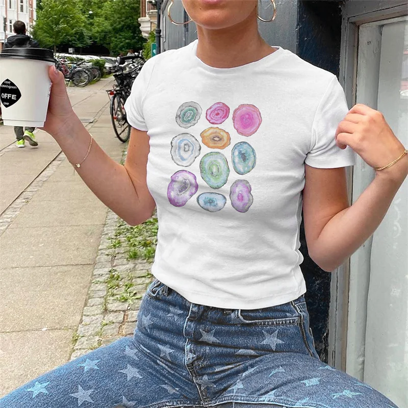 Super comfy and stylish which is what your closet is missing and is very popular among party. Easy to wash and dry with no wrinkles.Size (cm)SLength: 53Bust: 80MLength: 54Bust: 84LLength: 55Bust: 90Size (inch)SLength: 20.87Bust: 31.5MLength: 21.26Bust: 33.07LLength: 21.65Bust: 35.43SpecificationItem Name: Womens T-shirtColor: MulticolorPattern: PrintMaterial: 100% PolyesterSleeve: Short SleeveCollar: Crew NeckGender: WomenSize: S, M, LPackage Contents1pc x womens T-shirtFriendly Tips1.Please kindly allow 2-3% difference according to manual measurement2.Please note that a slight color difference should be acceptable due to the light and screen. Thanks.PromiseIf the product has any quality problems, please feel free to contact us, we will help you solve the problem as quickly as possible.
