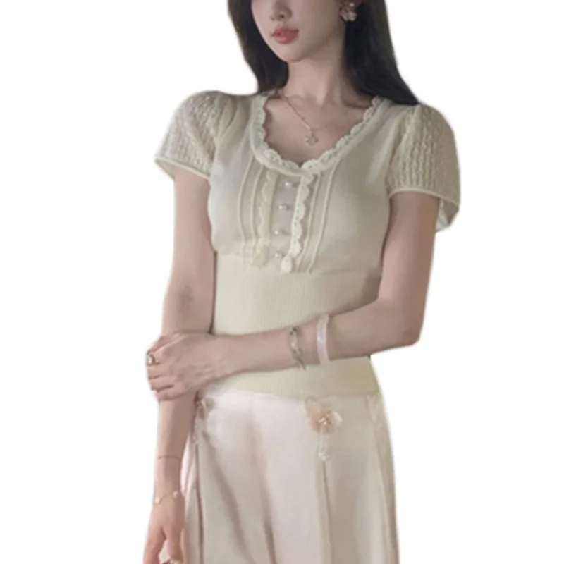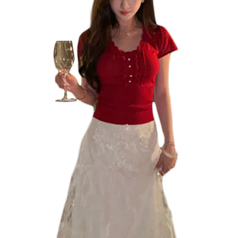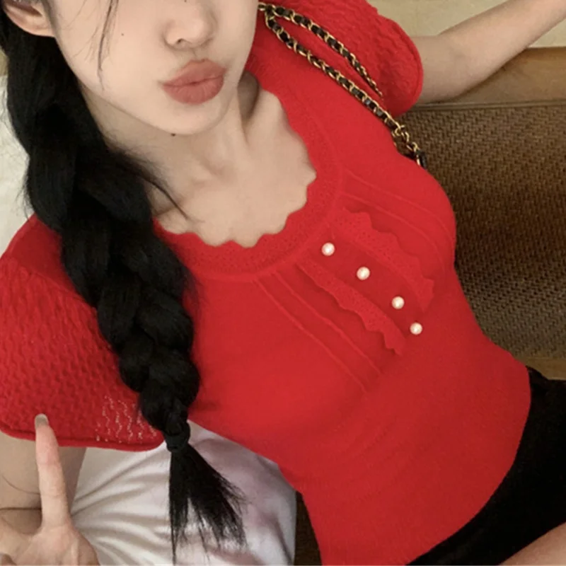 y2k Crop Tops Women Coquette Clothes Slim Fit Round Neck Short Sleeve T Shirt Fairycore Aesthetic Clothing Streetwear