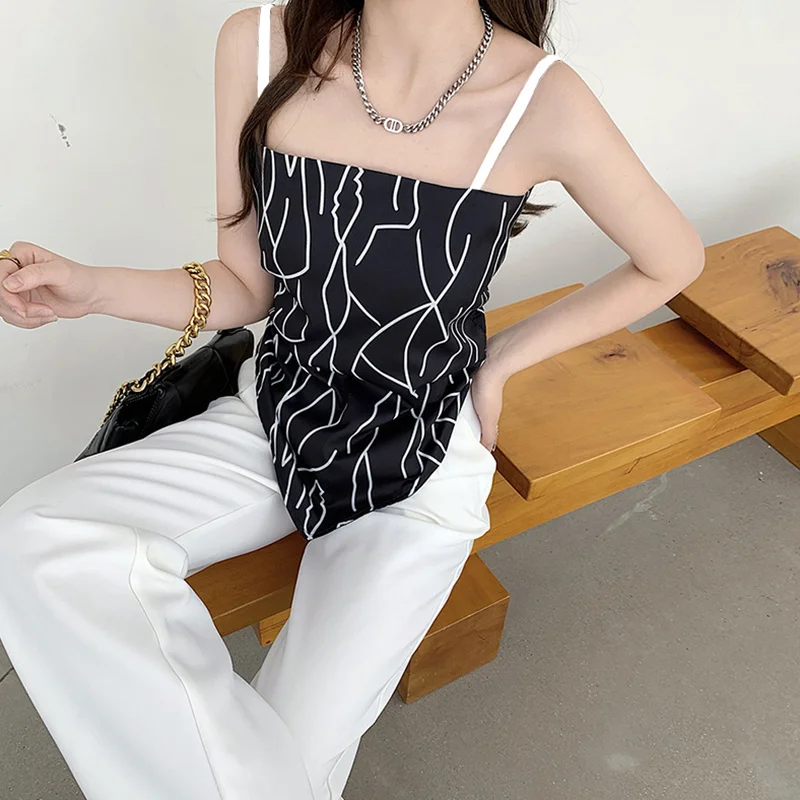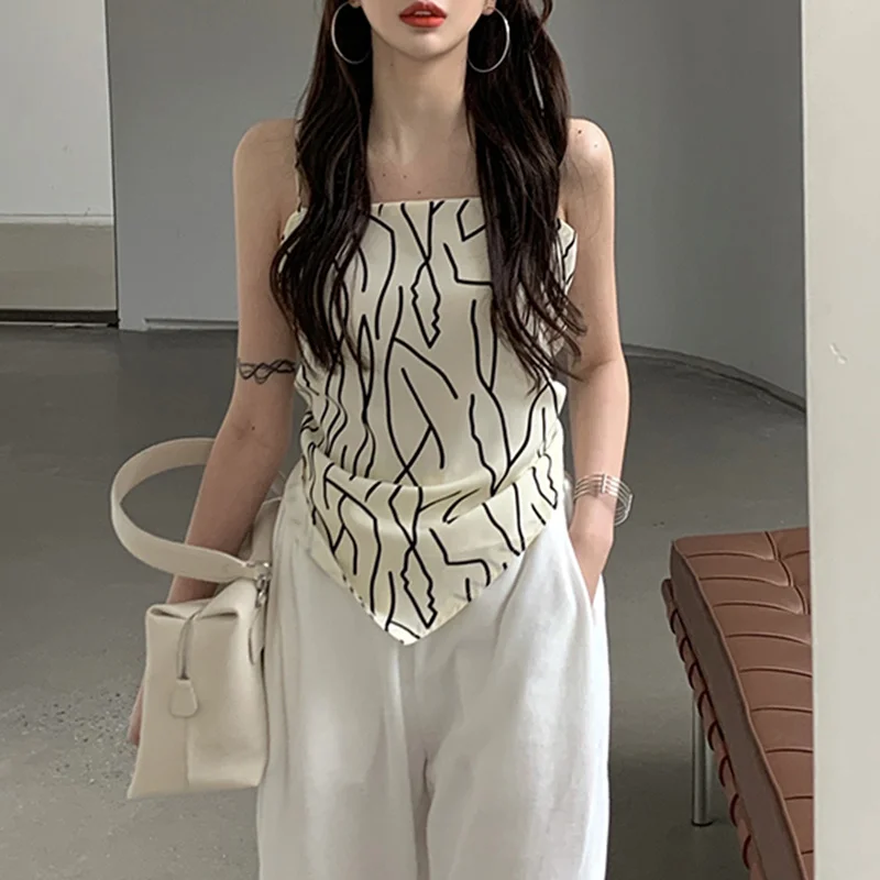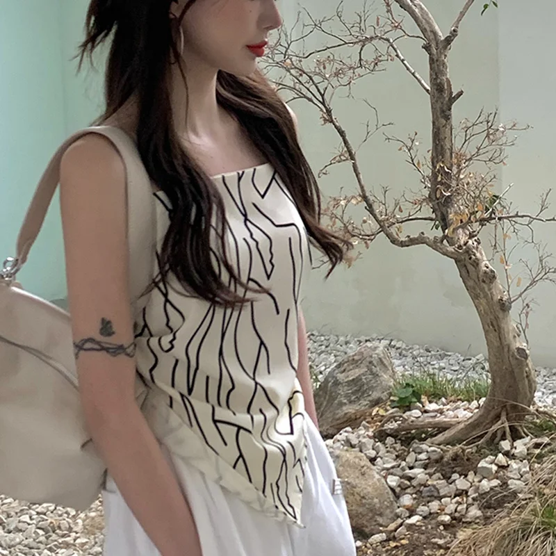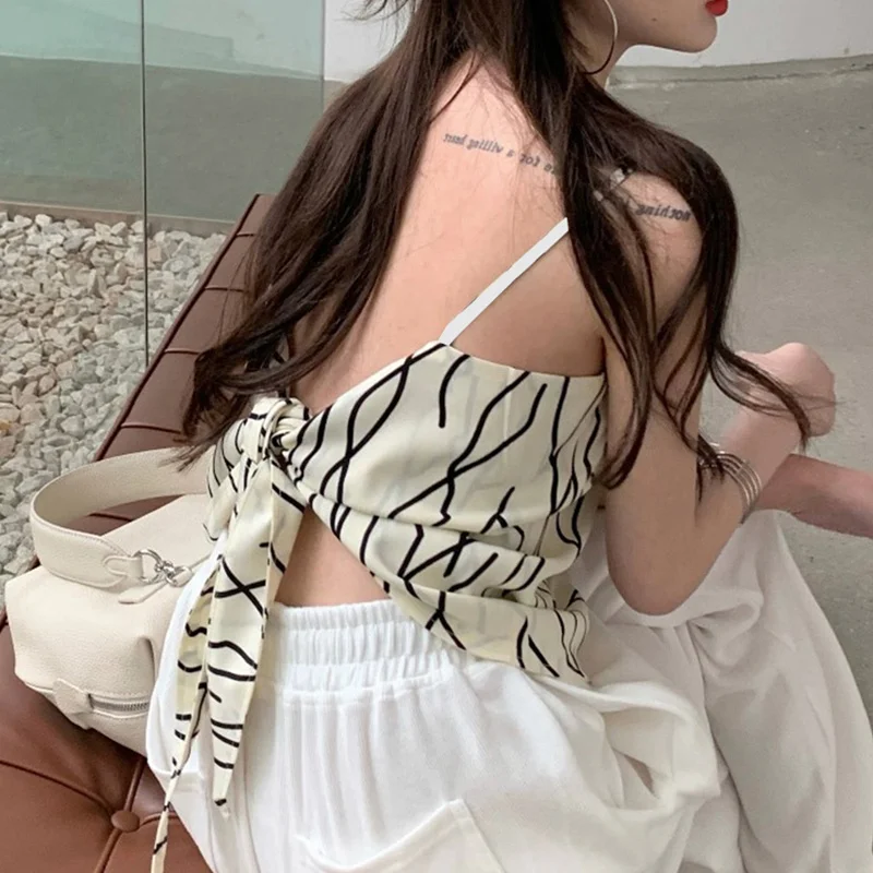 y2k Tops Summer Women Geometric Stripe Print Spaghetti Strap Sleeveless Backless Camisole 2000s Clothing Streetwear