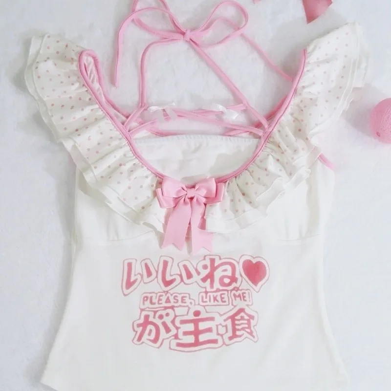 Y2k Tops Sweet Woman T Shirts Fake Two Tees Crop Top 2024 Ropa Mujer Japanese Polka Dot Camisetas Fashion Casual Summer Tshirt