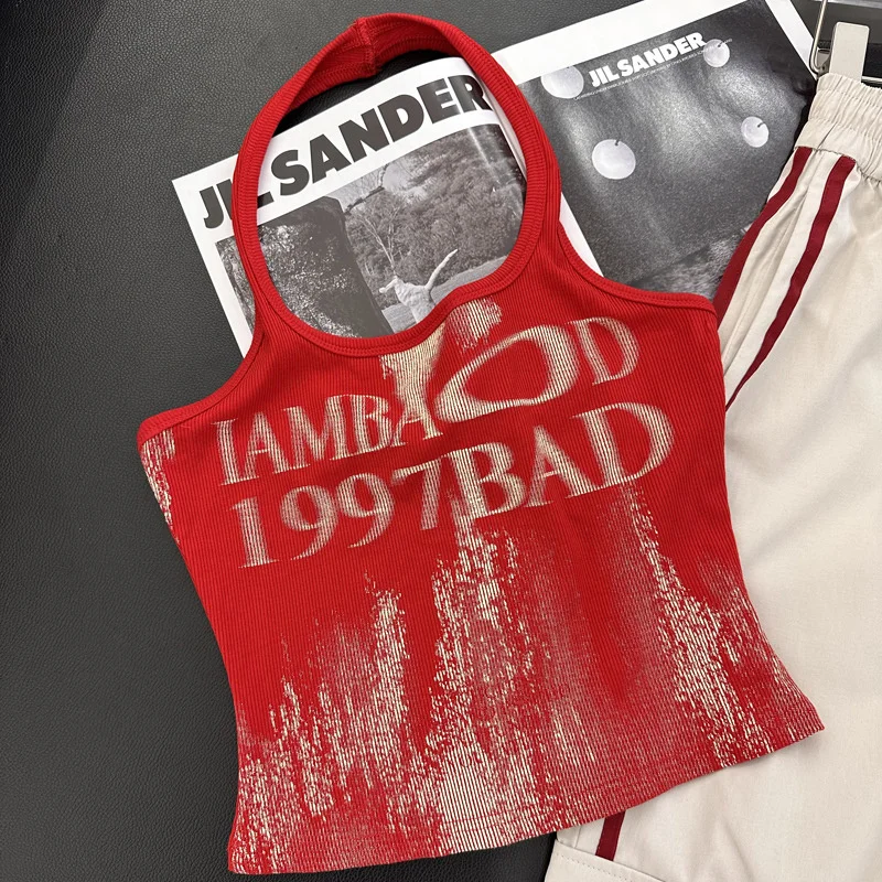 Looking for a perfect halter top to beat the summer heat? Our halter neck top has a flattering cut and stylish design, it is a must-have for any fashion-forward woman.Size (cm)MLength: 31Bust: 63Size (inch)MLength: 12.2Bust: 24.8SpecificationItem Name: Womens VestColor: Red, GrayMaterial: PolyesterSleeve: SleevelessCollar: HalterneckPattern: PrintSize: MPackage Contents1pc x womens vestFriendly Tips1.Please kindly allow 2-3% difference according to manual measurement2.Please note that a slight color difference should be acceptable due to the light and screen. Thanks.PromiseIf the product has any quality problems, please feel free to contact us, we will help you solve the problem as quickly as possible.