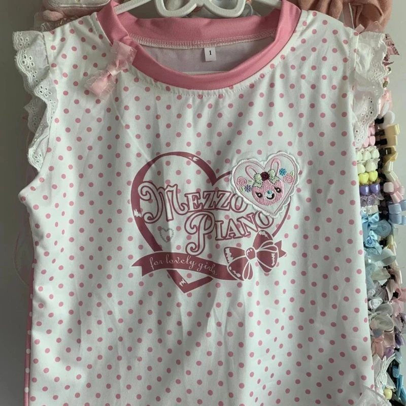 Y2k Tshirts for Women Japanese Tees O-neck Sleeveless Embroidery Rabbit Tees 2024 Ropa Mujer Summer Camisetas Sweet Crop T Shirt