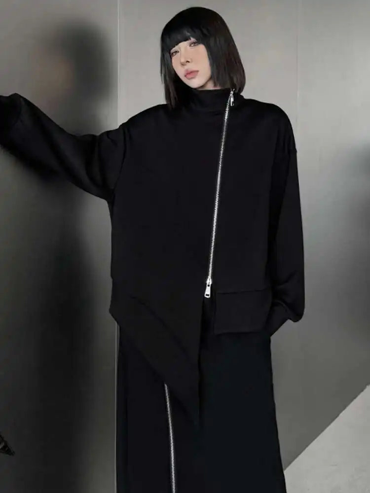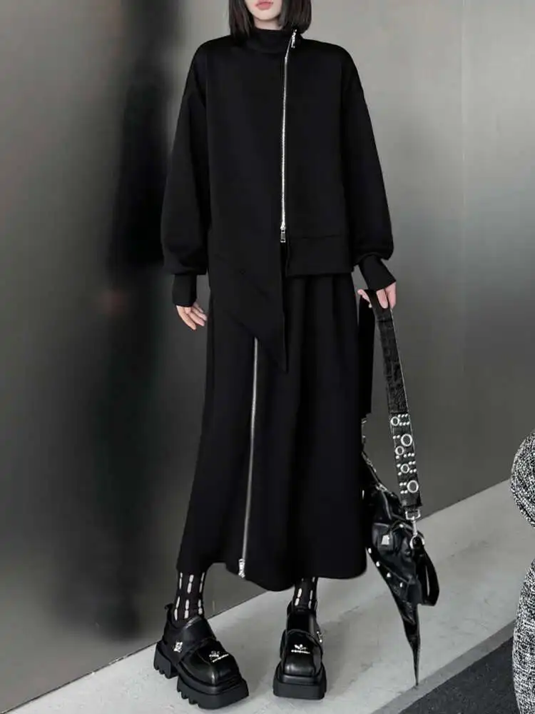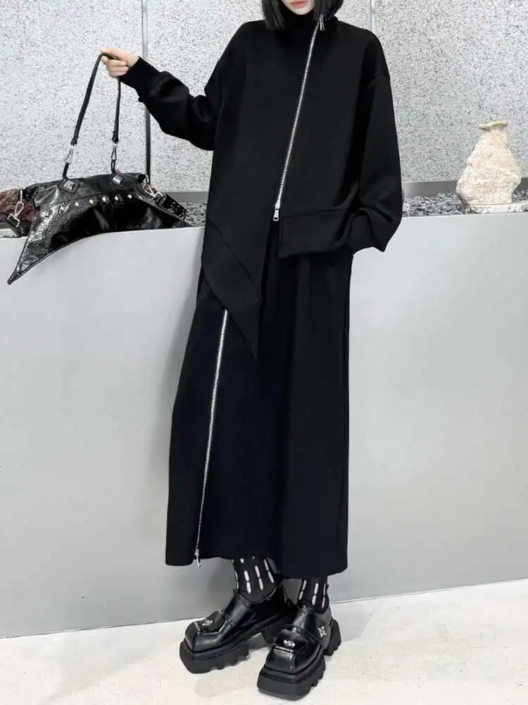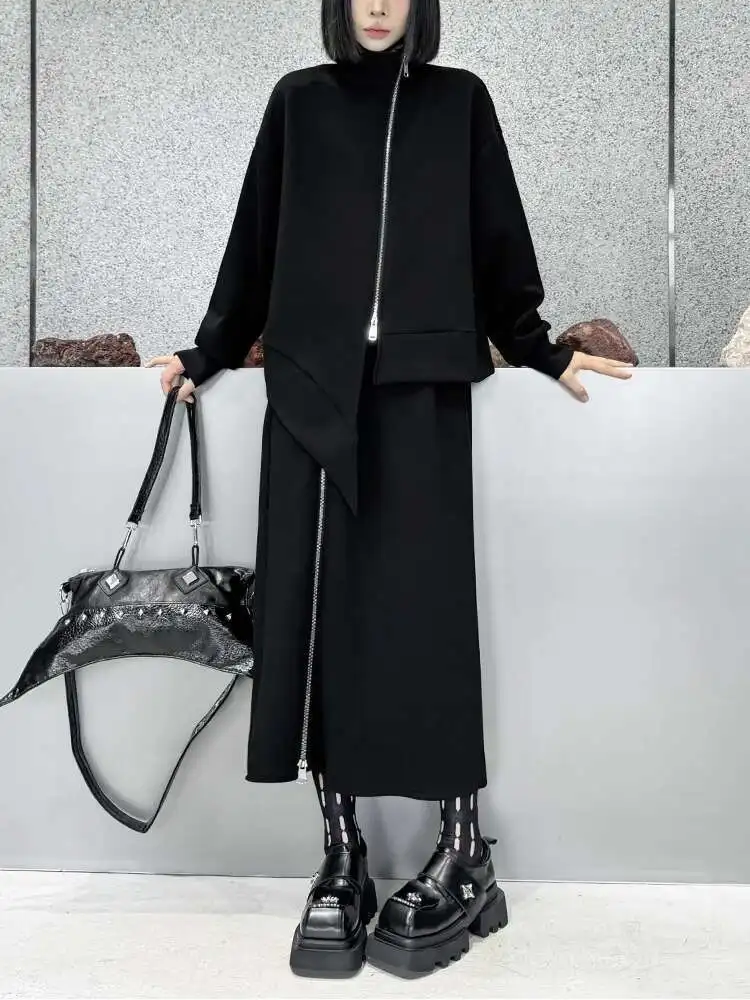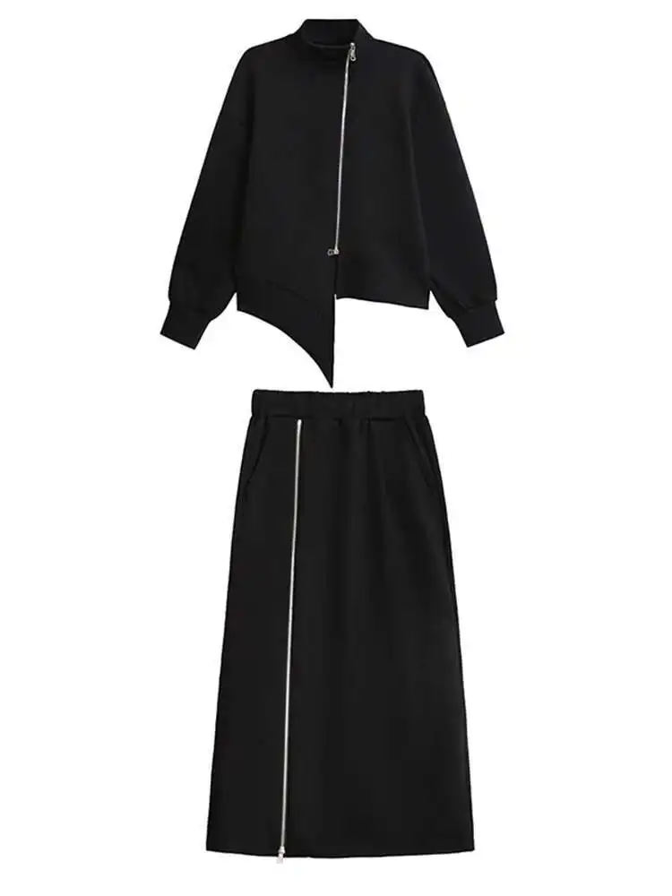 Zipper Sweatshirt Half-body Skirt Two Pieces Suit New Turtleneck Long Sleeve Women Fashion Tide Spring Autumn 2025 1DH7237
